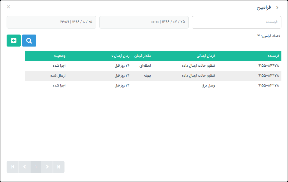 با انتخاب این گزینه میتوانید لیست فرامین ارسال شده به ردیاب را در بازه زمانی دلخواه مشاهده نمایید. توجه شود که این قابلیت تنها برای ردیابهای راهاندازی شده قابل مشاهده است.