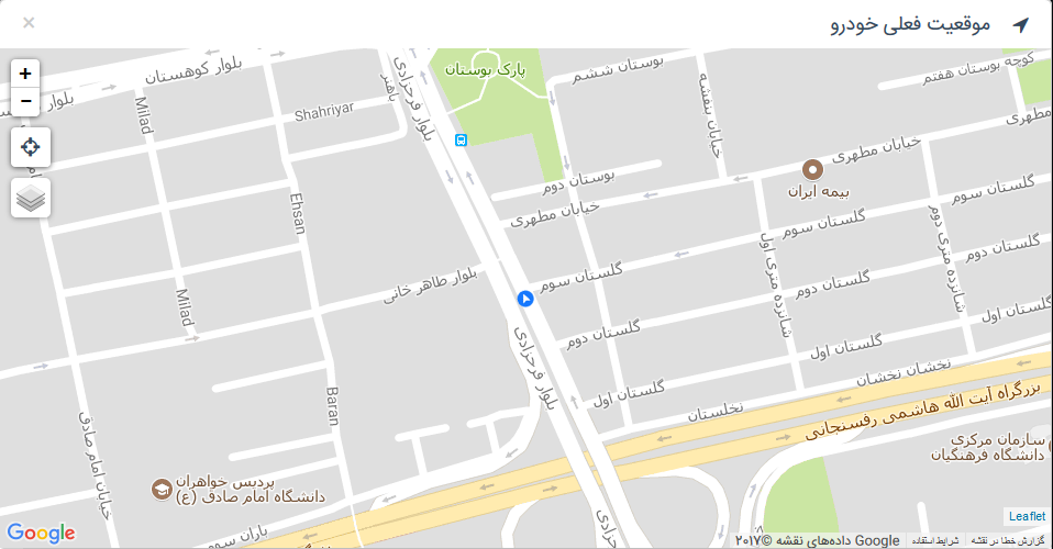 با انتخاب این گزینه آخرین موقعیت خودرو بر روی نقشه نمایش داده میشود. درصورتی که خودرو در حال حرکت باشد، مکان خودرو بر روی نقشه به روز خواهد شد. با زدن دکمه مکان اولیه، خودرو در مرکز صفحه قرار خواهد گرفت.